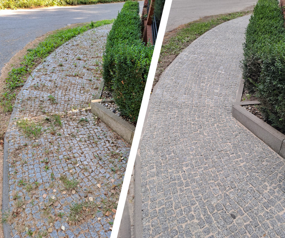 Zobacz, jak wyglądają efekty naszej pracy. Każda realizacja to dowód na to, że skuteczne czyszczenie i odpowiednia ochrona potrafią całkowicie odmienić wygląd powierzchni zewnętrznych – od kostki brukowej po dachy i elewacje.